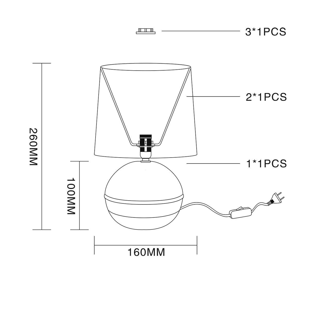 Для лампы необходима 1 лампа накаливания 40 W и цоколем E14. Лампы приобретаются отдельно. Габариты изделия: высота – 260 мм, диаметр – 160 мм.