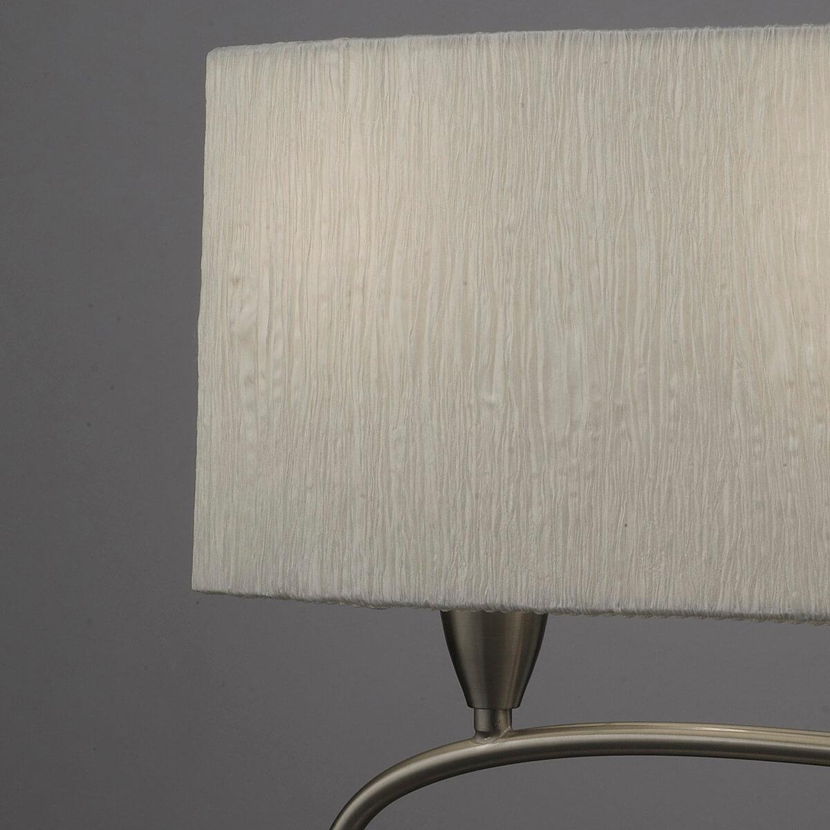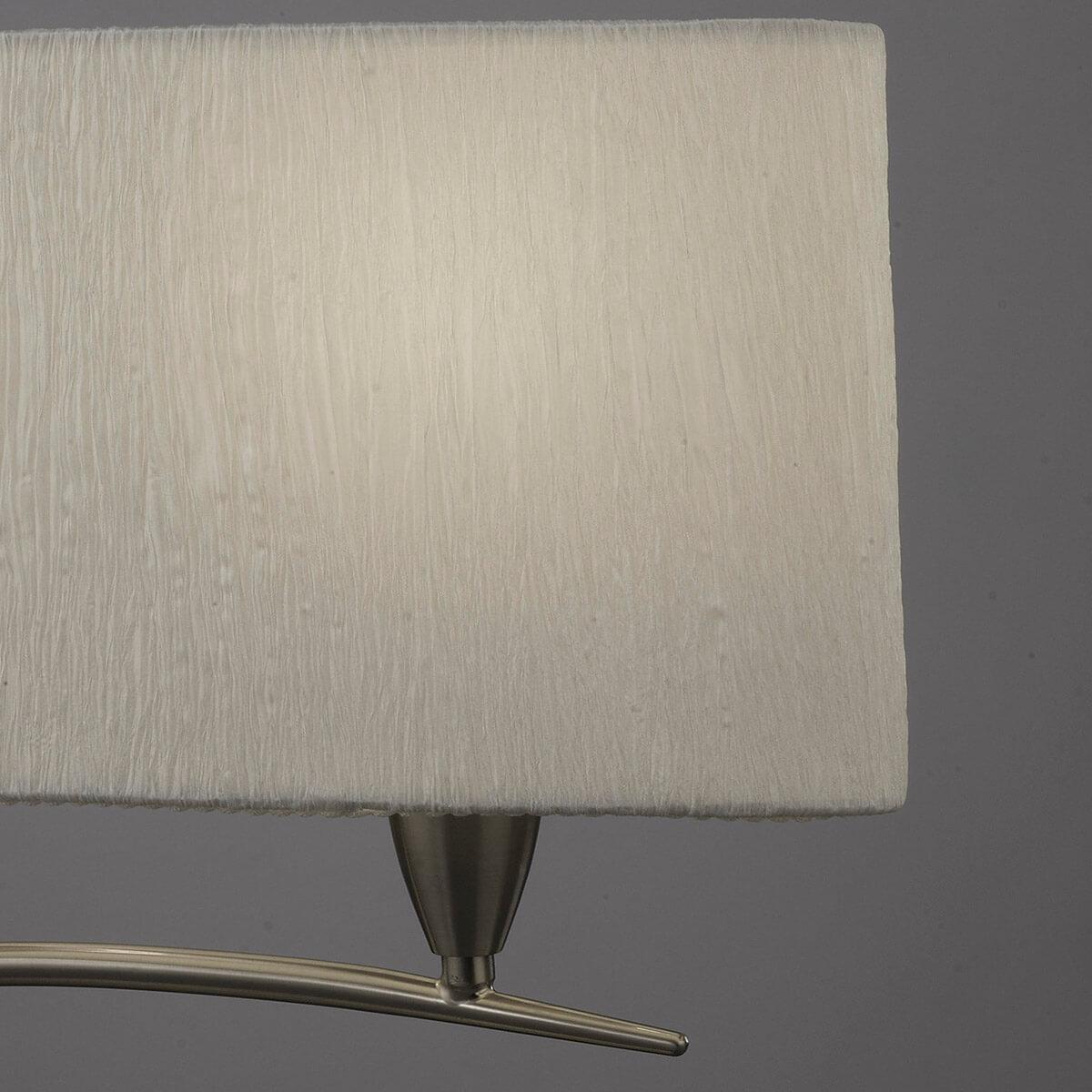 Настольная лампа Mantra Lua 3703 от Китайского бренда Mantra из коллекции Lua ) подходит для установки на стол в кафе и ресторанах в дизайнерском стиле. Лампа из металлической основы - цвет хрома и плафонами из ткани в форме цилиндра - белого цвета.
