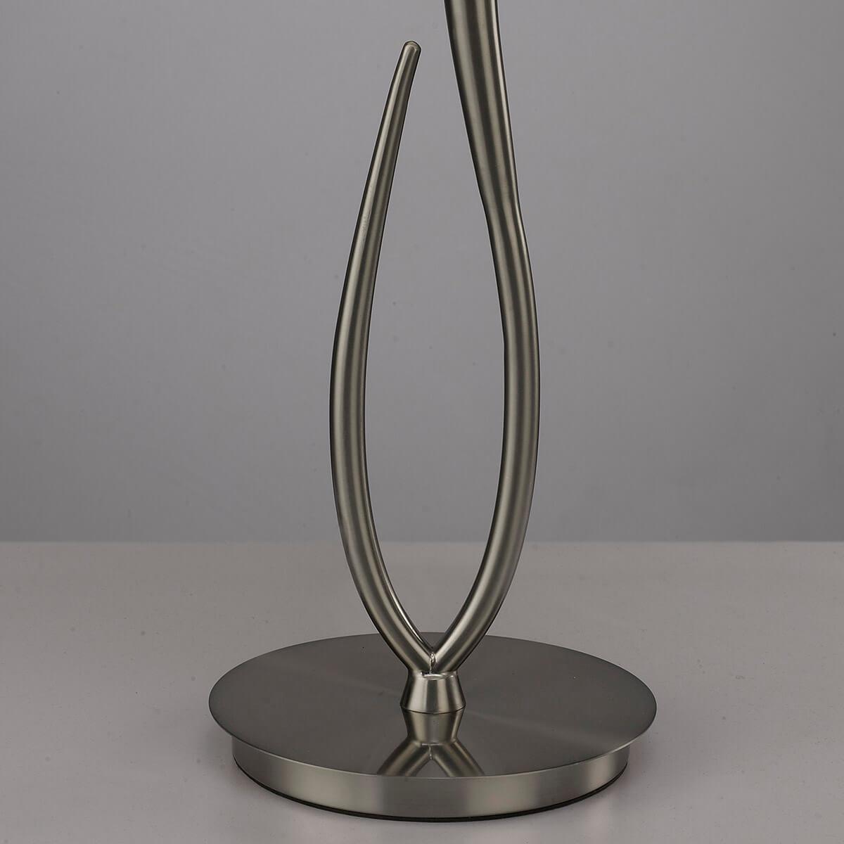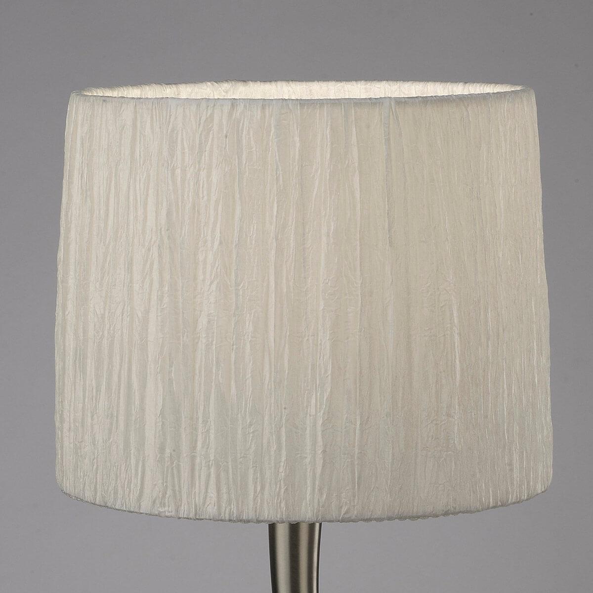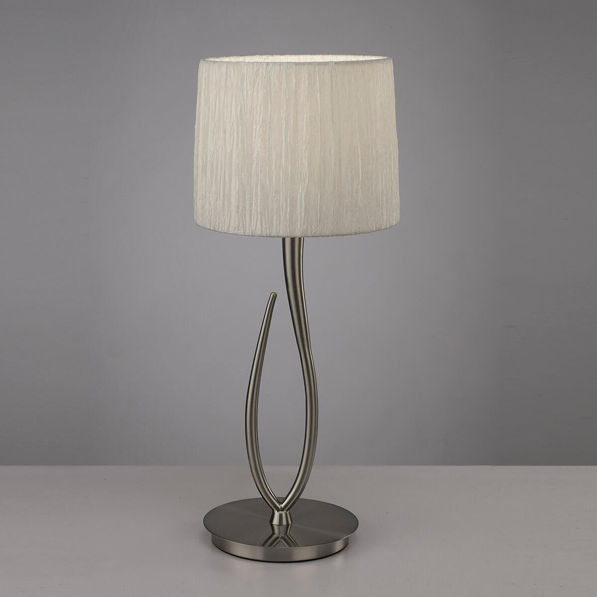 Настольная лампа Mantra Lua 3708 от Испанского бренда Mantra из коллекции Lua ) подходит для установки на стол в прихожей в дизайнерском стиле. Лампа из металлической основы - цвет хрома и плафонами из ткани в форме цилиндра - белого цвета.