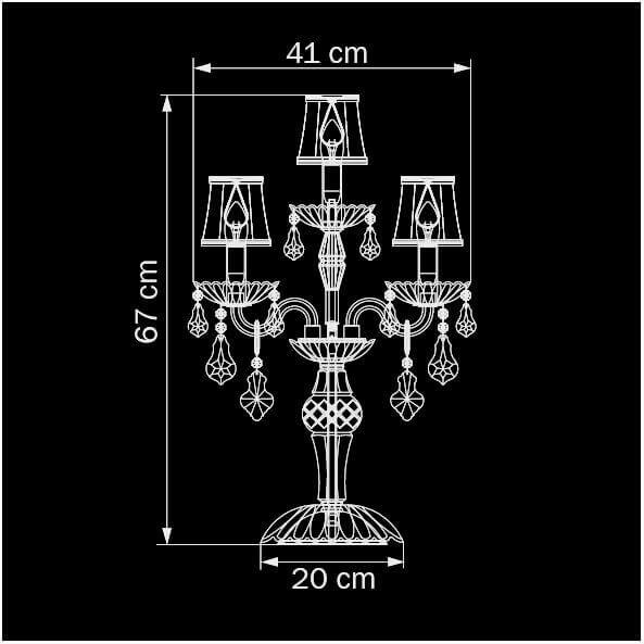 Для лампы необходима 5 ламп накаливания 40 W и цоколем E14. Лампы приобретаются отдельно. Габариты изделия: высота – 680 мм, диаметр – 400 мм.