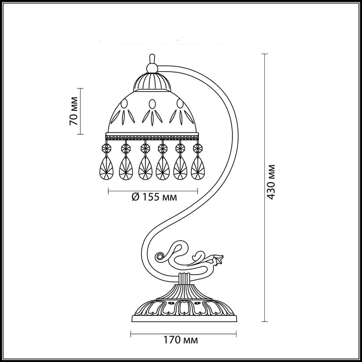 Для лампы необходима 1 лампа накаливания 60 W и цоколем E27. Лампы приобретаются отдельно. Габариты изделия: высота – 430 мм