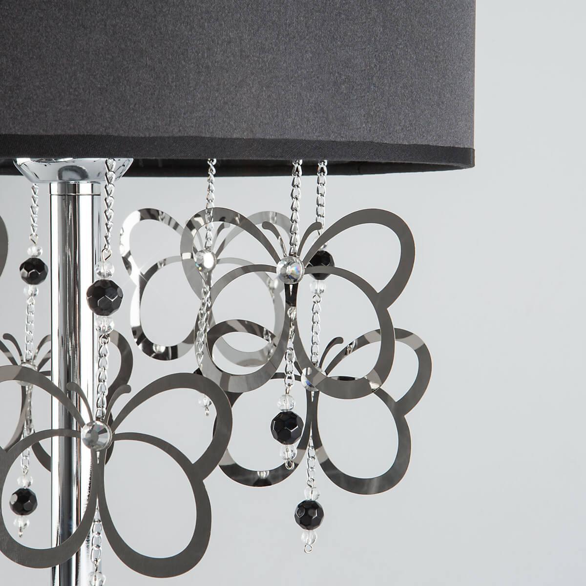Настольная лампа Bogates 01094/1 от Российского бренда Bogates из коллекции Papillon ) подходит для установки на стол в гостиной в стиле Арт-деко. Лампа из металлической основы - цвет хрома и плафонами из ткани в форме цилиндра - черного цвета.