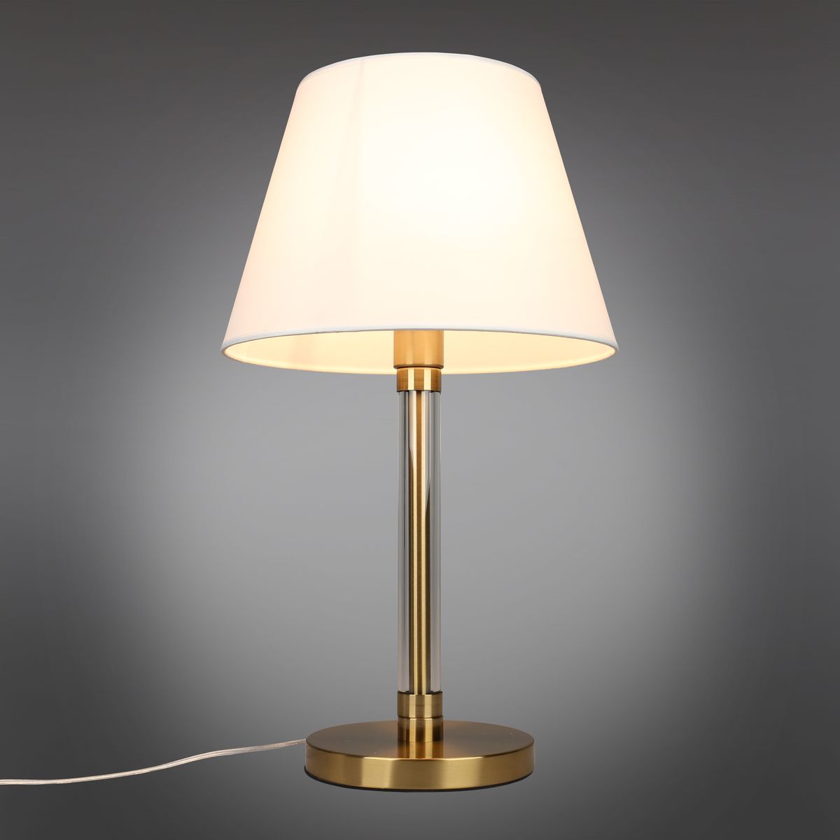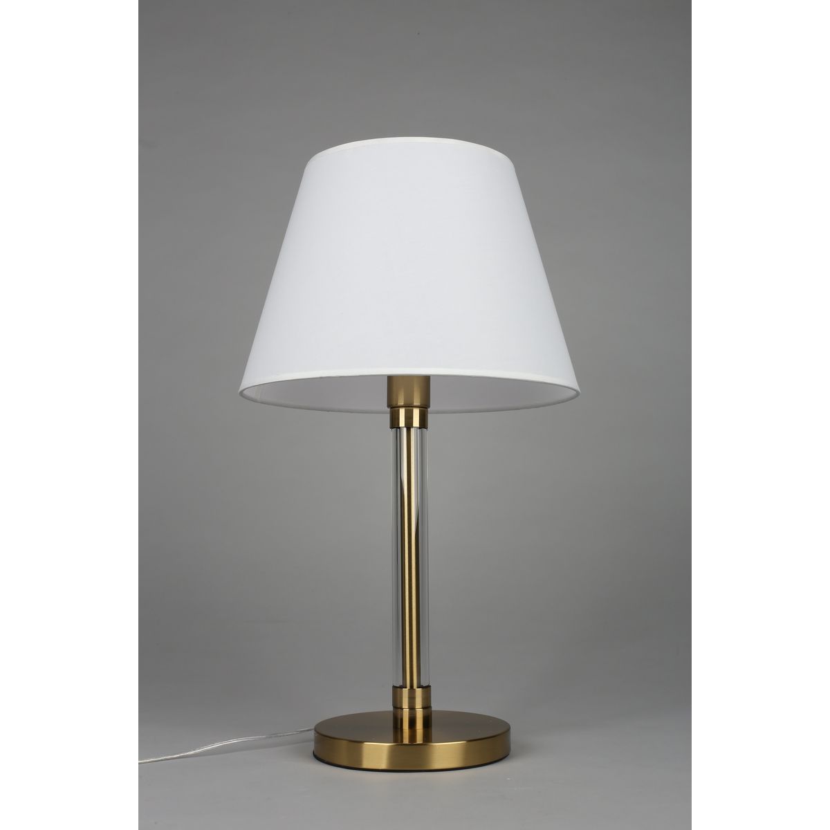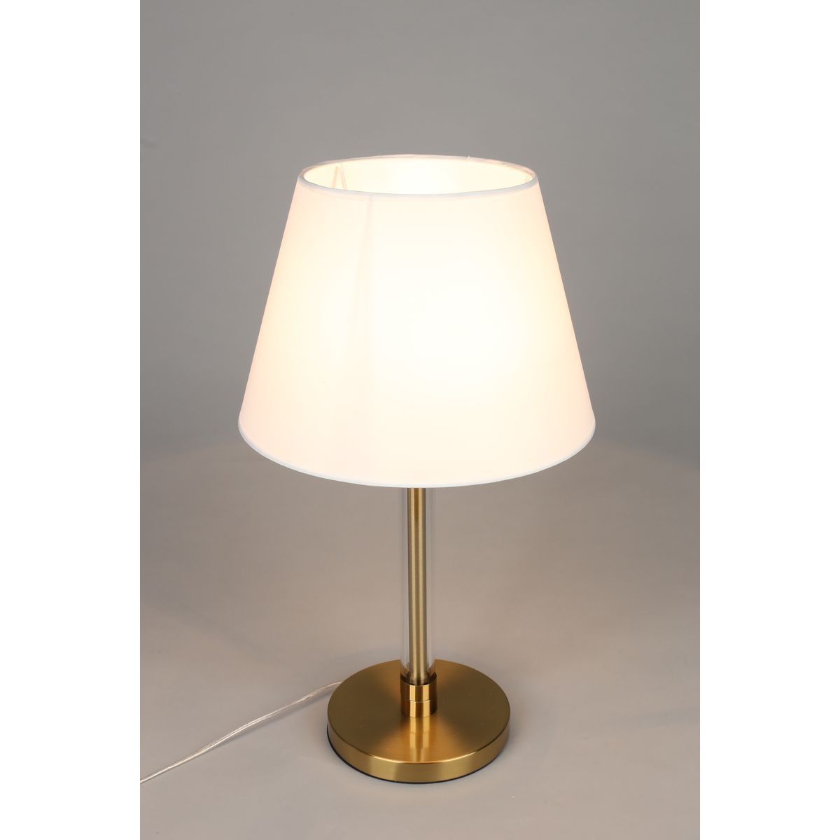 Настольная лампа Omnilux Rimaggio OML-29414-01 от Китайского бренда из коллекции Rimaggio ) подходит для установки на стол в спальни в стиле модерн. Лампа из металлической основы - цвета латуни и плафонами из ткани в форме - белого цвета.