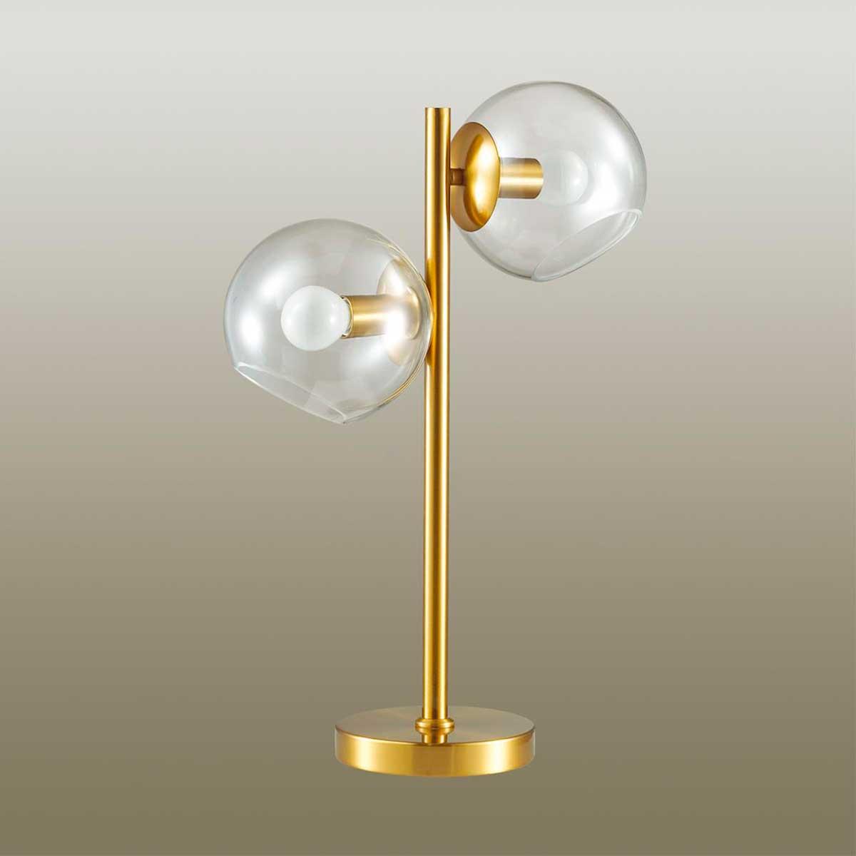 Настольная лампа Lumion Blair 3769/2T от Итальянского бренда Lumion из коллекции Blair ) подходит для установки на стол в кухне в скандинавском стиле. Лампа из металлической основы - цвета латуни и плафонами из стекла в форме круга - прозрачного цвета.