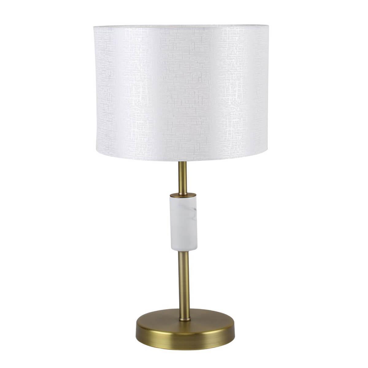 Настольная лампа F-Promo Marbella 2347-1T от Немецкого бренда F-Promo из коллекции Marbella ) подходит для установки на стол в спальни в стиле модерн. Лампа из металлической основы - цвета латуни и плафонами из ткани в форме цилиндра - белого цвета.