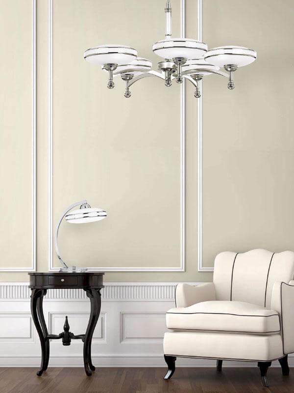 Настольная лампа Kutek Esprit ESP-LG-1 (C) от Польского бренда Kutek из коллекции Esprit ) подходит для установки на стол в прихожей в американском стиле. Лампа из латунной основы - цвет хрома и плафонами из стекла в форме овала - белого цвета.