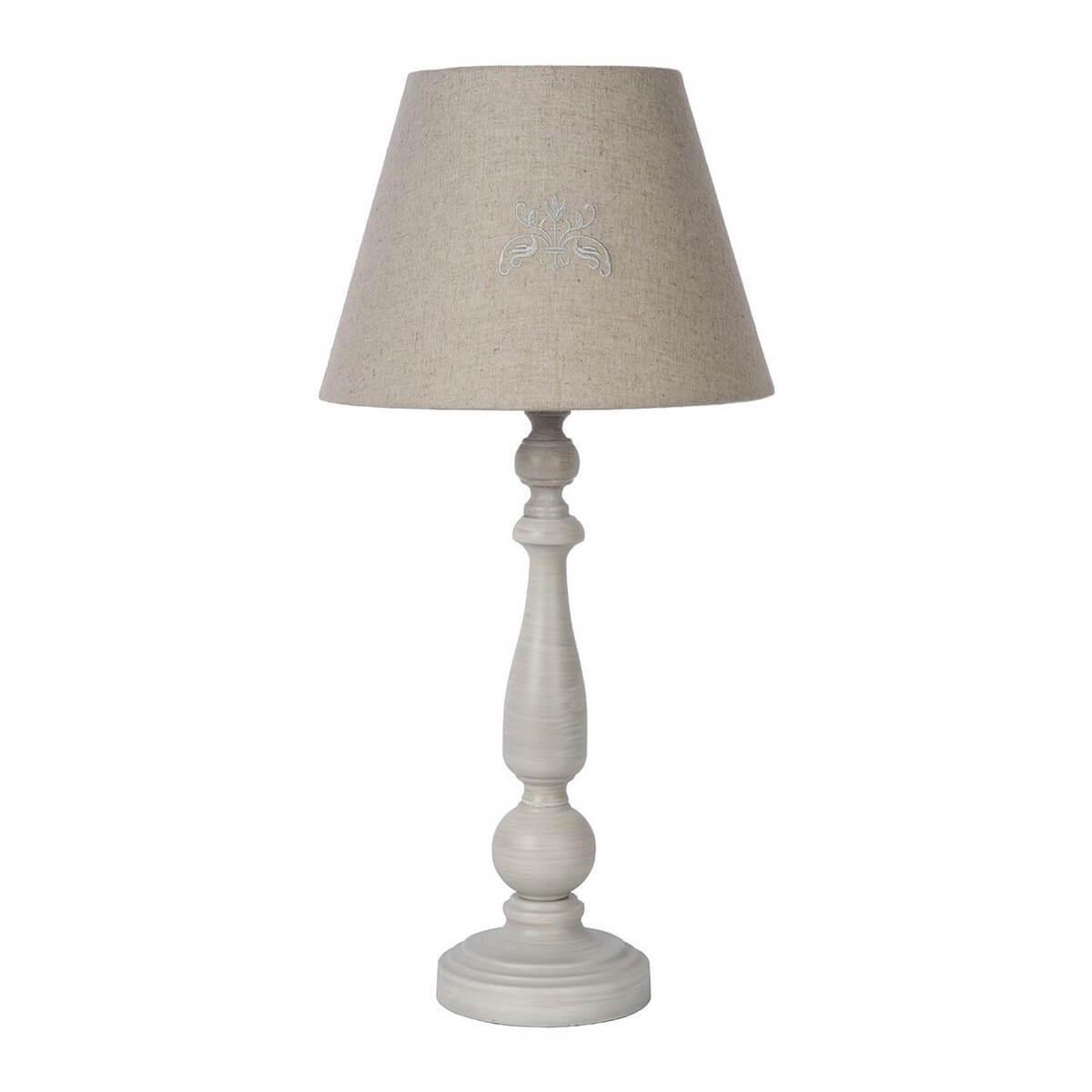 Настольная лампа Lucide Robin 34539/81/41 от Бельгийского бренда Lucide из коллекции Robin ) подходит для установки на стол в спальни в стиле кантри. Лампа из деревянной основы - серого цвета и плафонами из ткани в форме конуса - серого цвета.