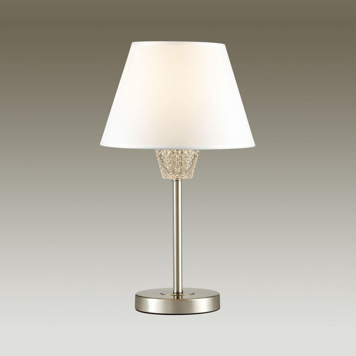 Настольная лампа Lumion Abigail 4433/1T от Итальянского бренда Lumion из коллекции Abigail ) подходит для установки на стол в гостиной в неоклассическом стиле. Лампа из металлической основы - цвета никель и плафонами из ткани в форме конуса - белого цвета.