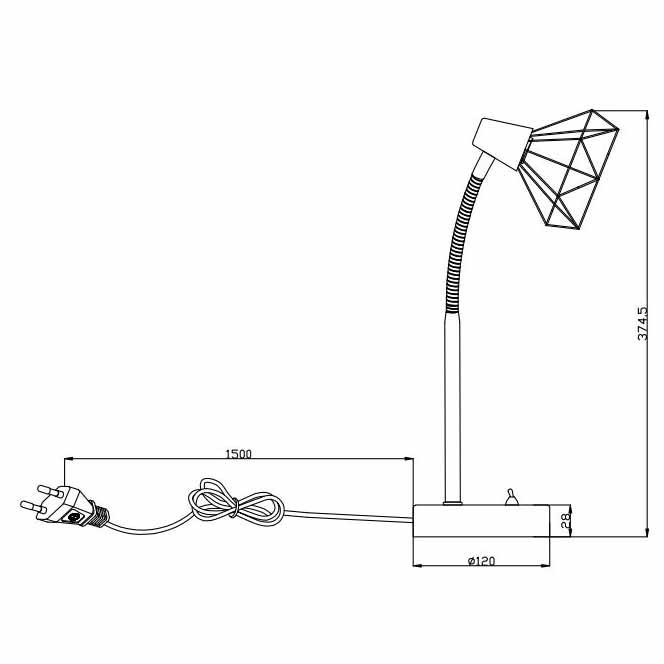 Для лампы необходима 1 лампа накаливания 40 W и цоколем E14. Лампы приобретаются отдельно. Габариты изделия: высота – 374 мм, диаметр – 120 мм.