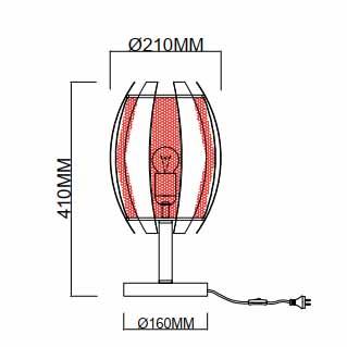 Для лампы необходима 1 лампа накаливания 40 W и цоколем E27. Лампы приобретаются отдельно. Габариты изделия: высота – 410 мм, диаметр – 210 мм.