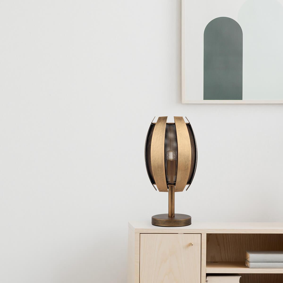 Настольная лампа Rivoli Diverto 4035-501 Б0044558 от Итальянского бренда Rivoli из коллекции Diverto ) подходит для установки на стол в спальни в современном стиле. Лампа из металлической основы - бронзового цвета и плафонами из металла в форме овала - бронзового цвета.