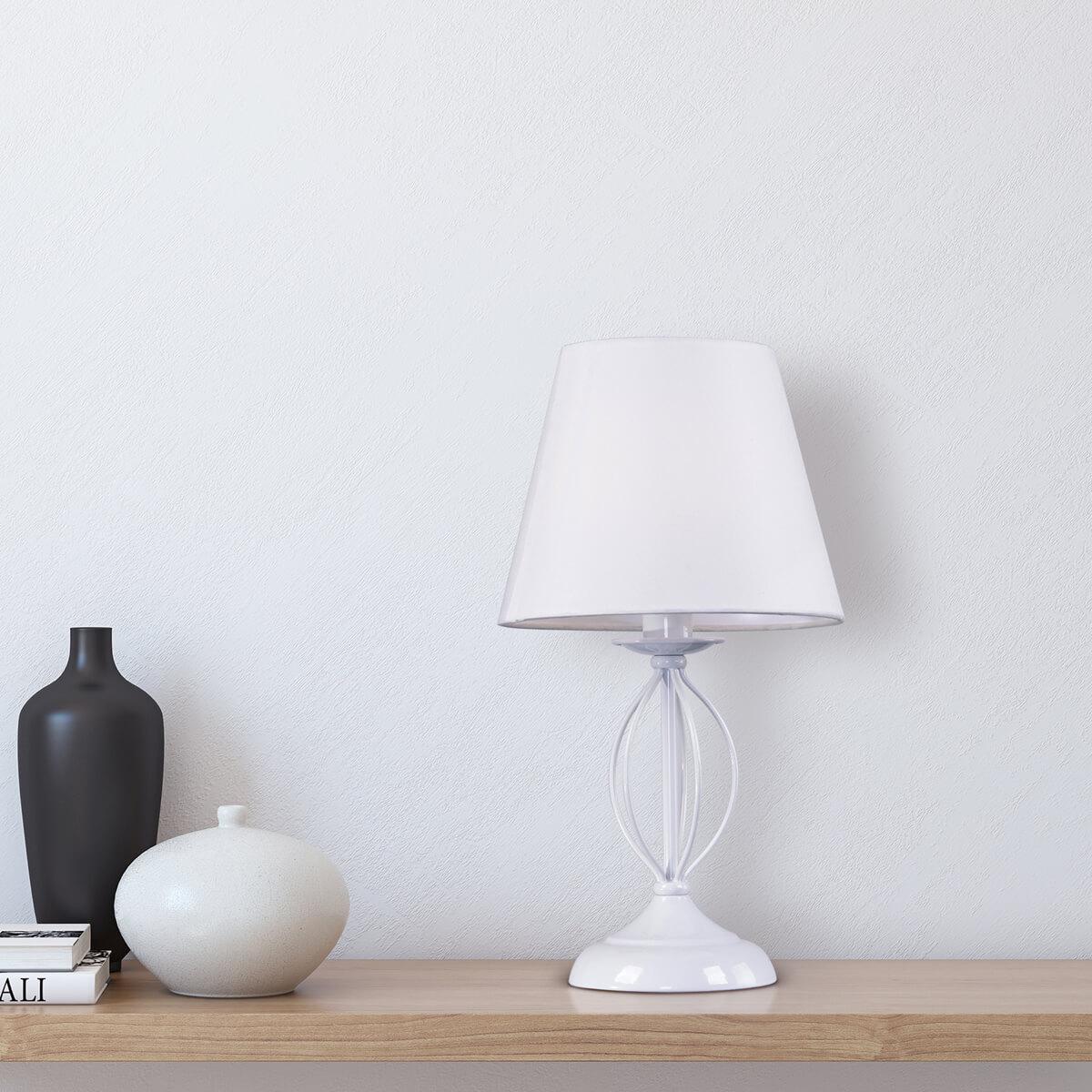 Настольная лампа Rivoli Facil 2043-501 Б0044371 от Итальянского бренда Rivoli из коллекции Facil ) подходит для установки на стол в спальни в стиле прованс. Лампа из металлической основы - белого цвета и плафонами из ткани в форме конуса - белого цвета.