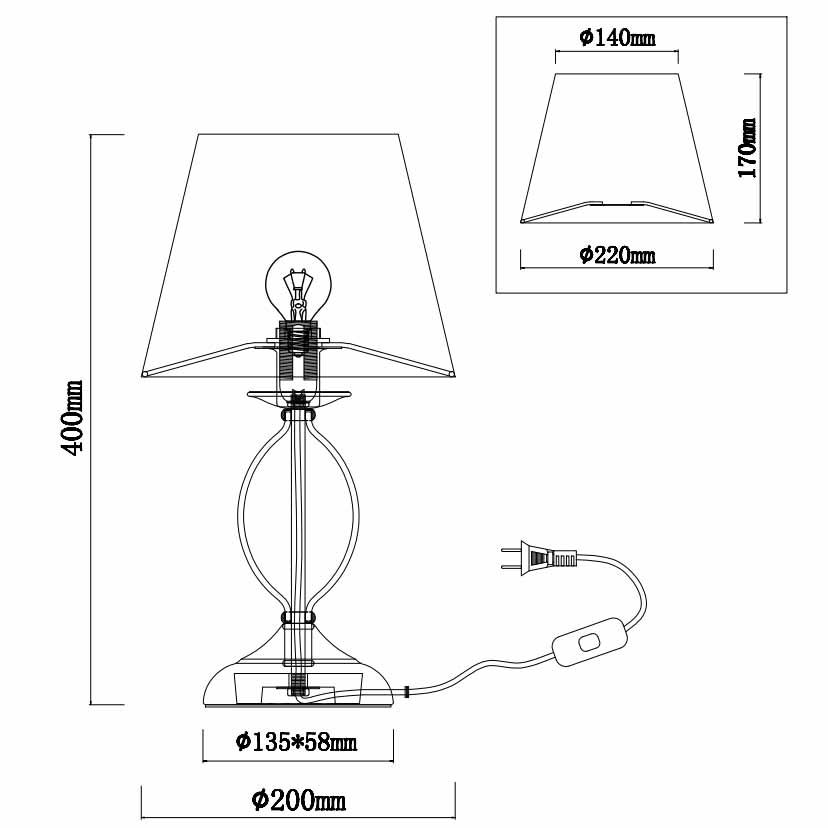 Для лампы необходима 1 лампа накаливания 40 W и цоколем E14. Лампы приобретаются отдельно. Габариты изделия: высота – 400 мм, диаметр – 220 мм.