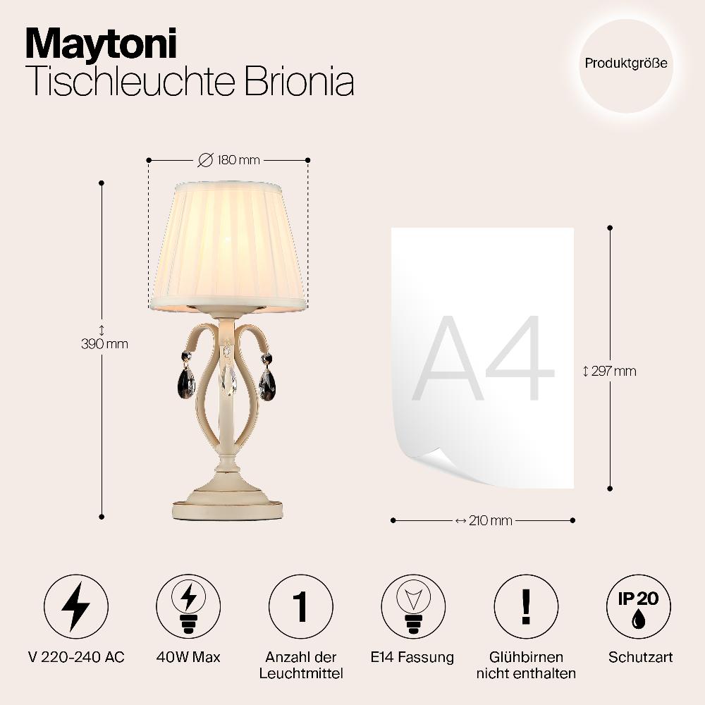 Настольная лампа Maytoni Brionia ARM172-01-G от бренда Maytoni из коллекции Elegant ) подходит для установки на стол в спальни в . Лампа из металлической основы - бежевого цвета и плафонами из органзы в форме - белого цвета.