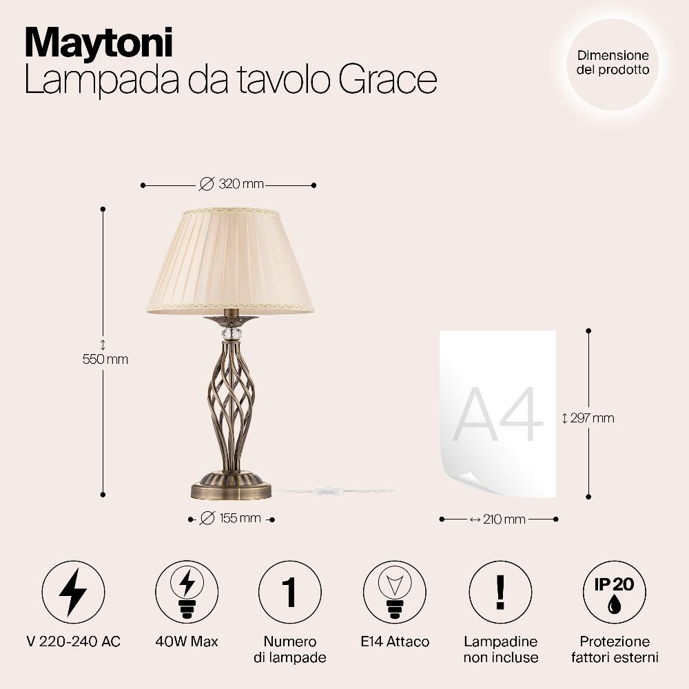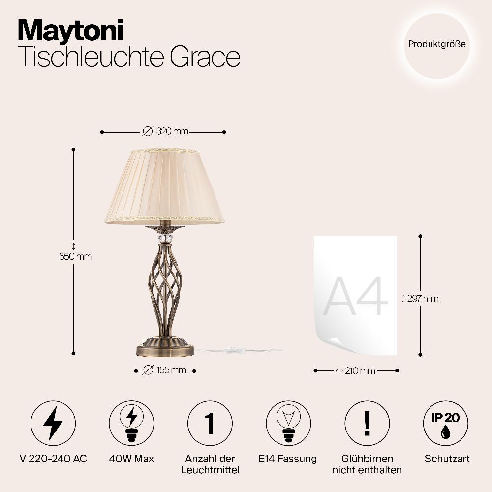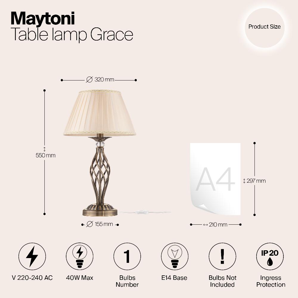 Настольная лампа Maytoni Grace RC247-TL-01-R от бренда Maytoni из коллекции Royal Classic ) подходит для установки на стол в гостиной в . Лампа из металлической основы - бронзового цвета и плафонами из органзы в форме - бежевого цвета.