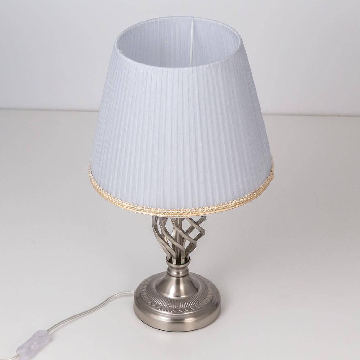 Настольная лампа Citilux Вена CL402811 от Китайского бренда Citilux из коллекции Вена ) подходит для установки на стол в спальни в классиком стиле. Лампа из металлической основы - цвет хрома и плафонами из ткани в форме конуса - дымчатого цвета.