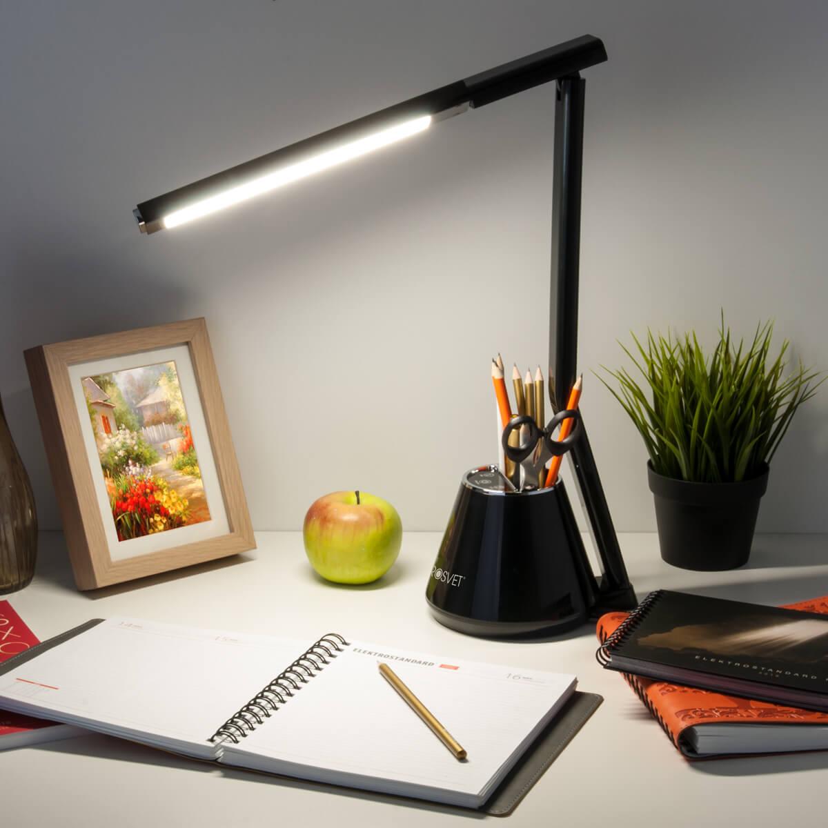 Настольная лампа Eurosvet Office 80421/1 черный от бренда Eurosvet из коллекции 80421 ) подходит для установки на стол в офисе в современном стиле. Лампа из пластиковой основы - черного цвета и плафонами из пластика в форме прямоугольника - черного цвета.