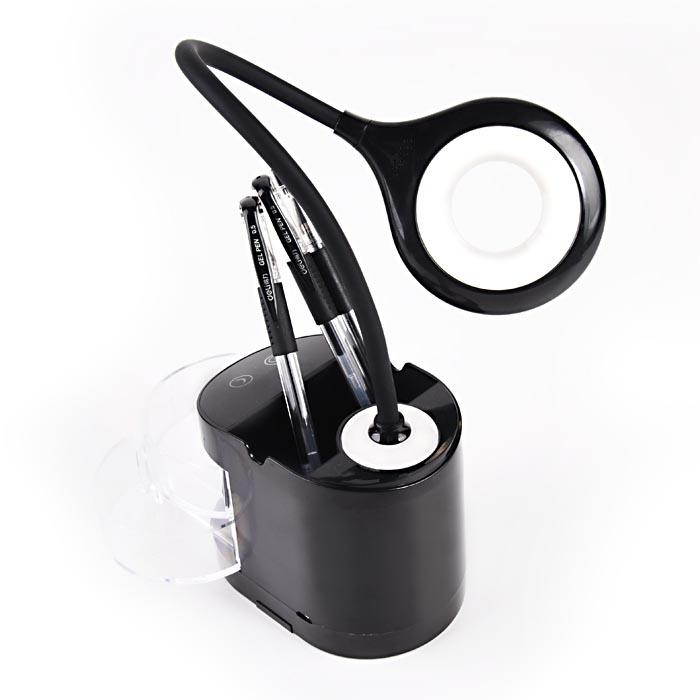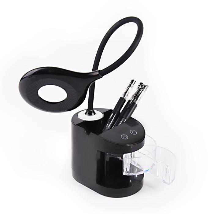 Настольная лампа Ambrella light Desk DE562 от бренда Ambrella light из коллекции Desk ) подходит для установки на стол в офисе в хай-тек стиле. Лампа из пластиковой основы - черного цвета и плафонами из пластика в форме круга - черного цвета.