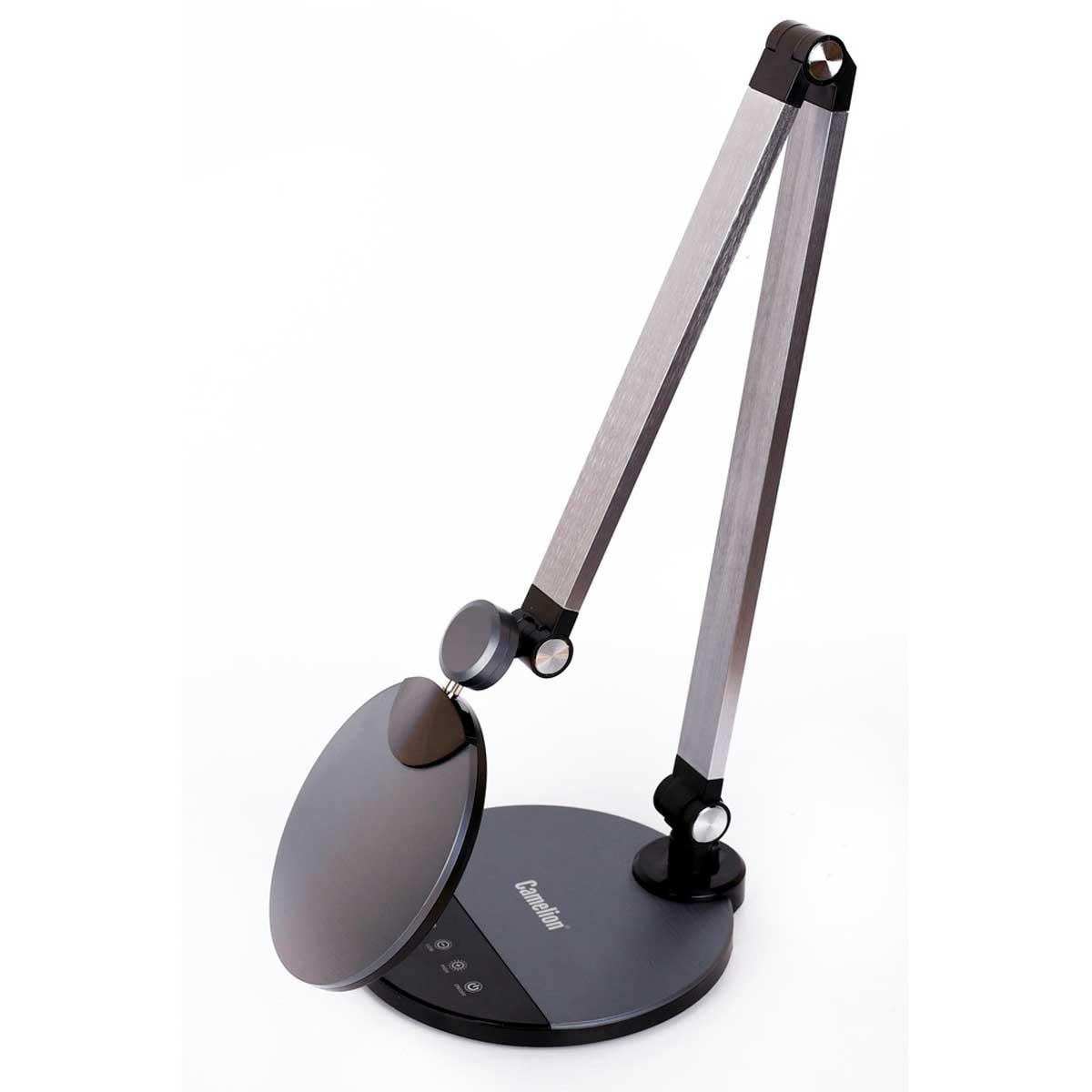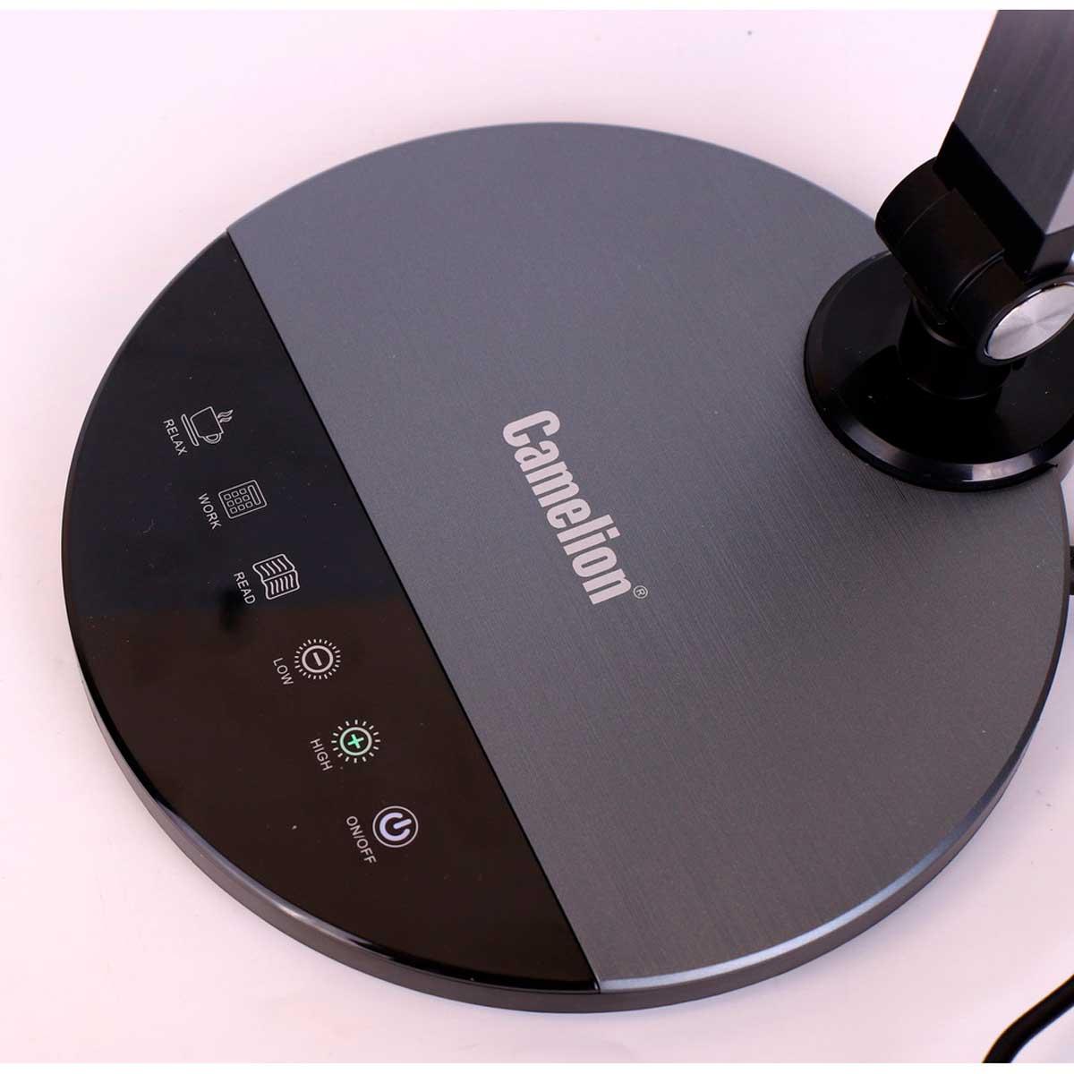 Настольная лампа Camelion KD-865 C48 13403 от Китайского бренда из коллекции ) подходит для установки на стол в современном стиле. Лампа из металлической основы - темно-серого цвета и плафонами из пластика в форме - темно-серого цвета.