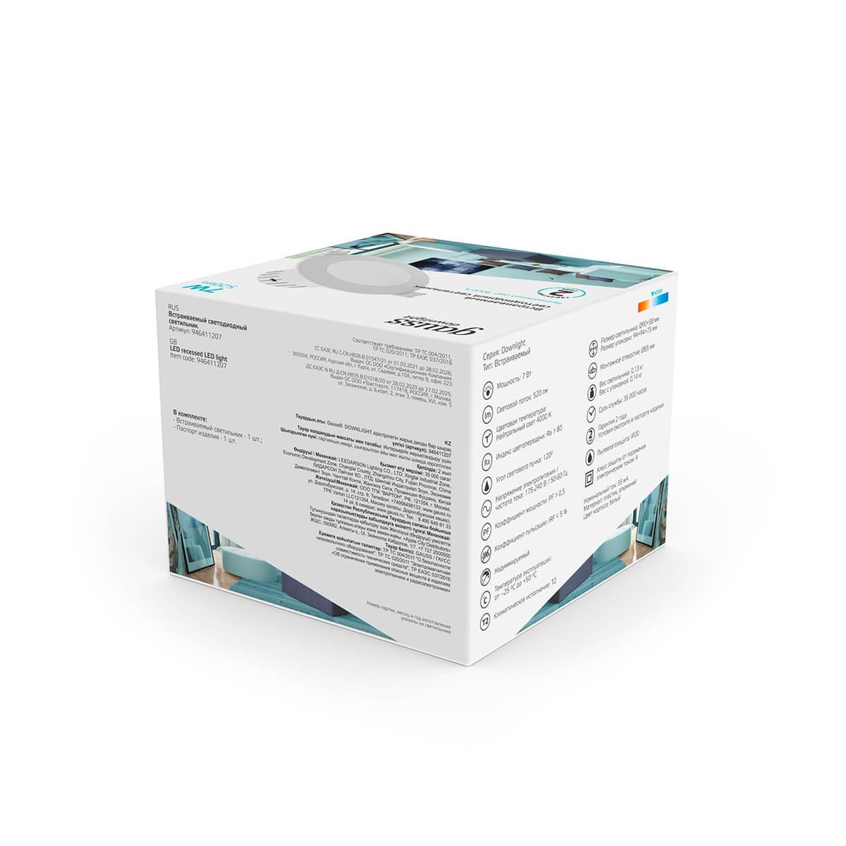 Встраиваемый светодиодный светильник Gauss 946411207