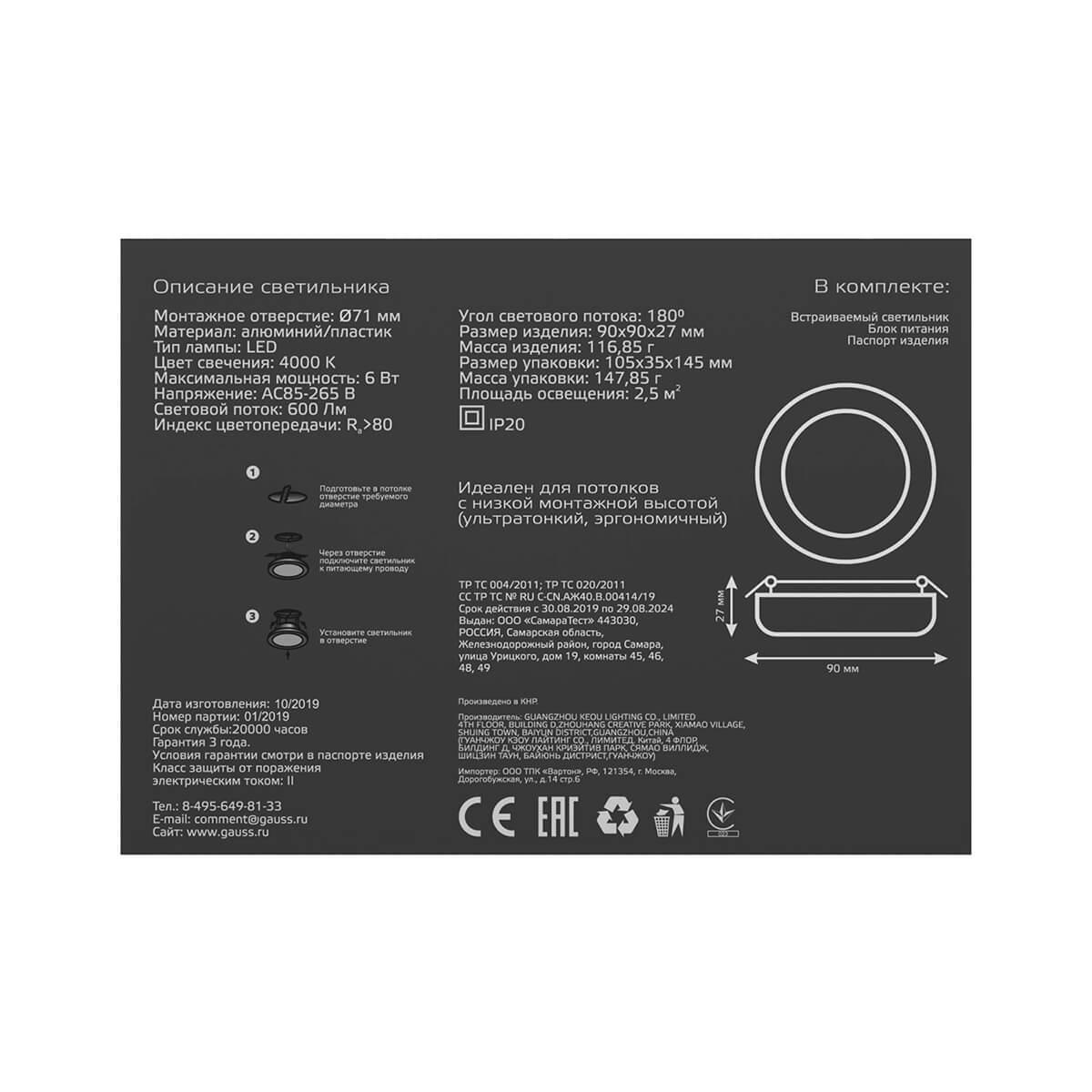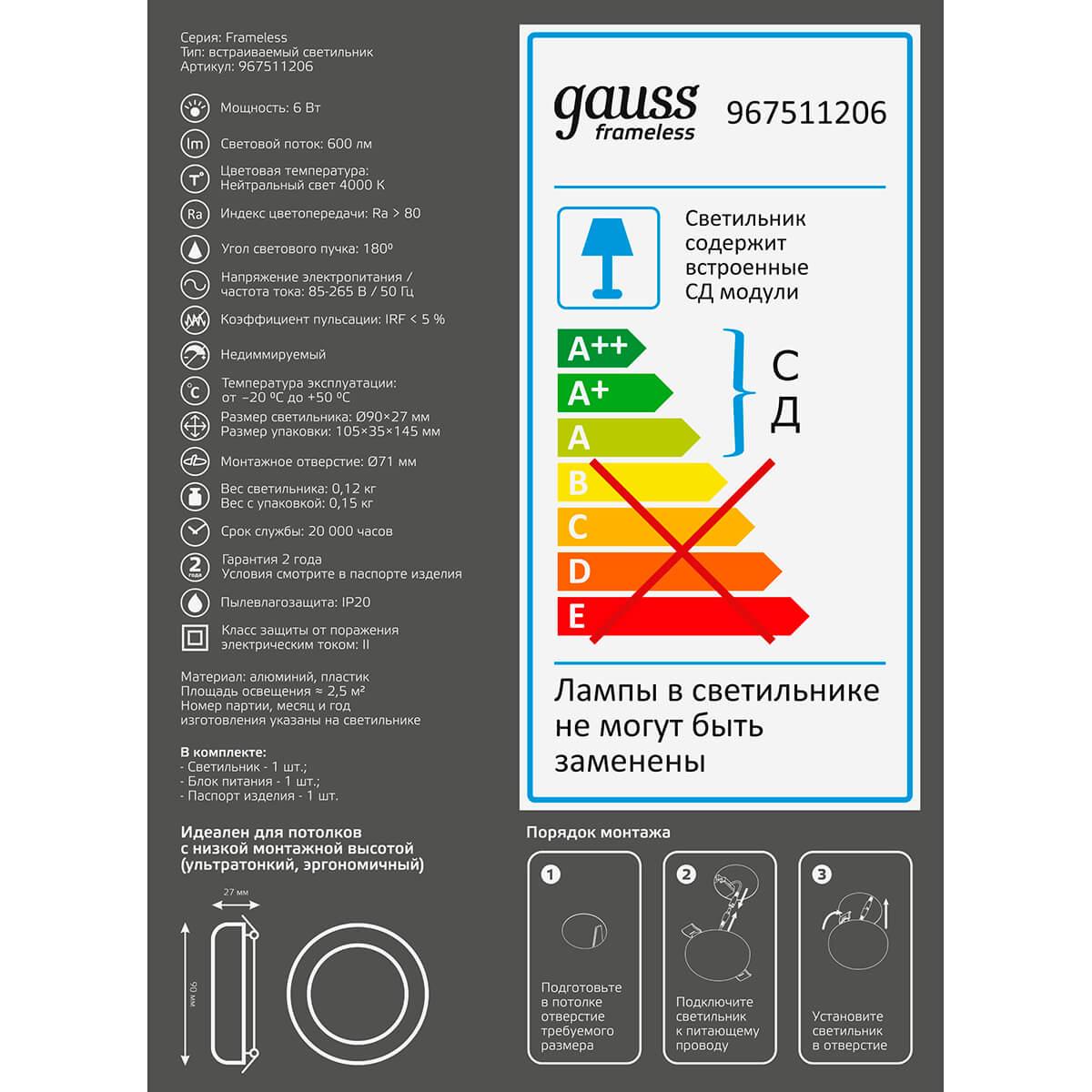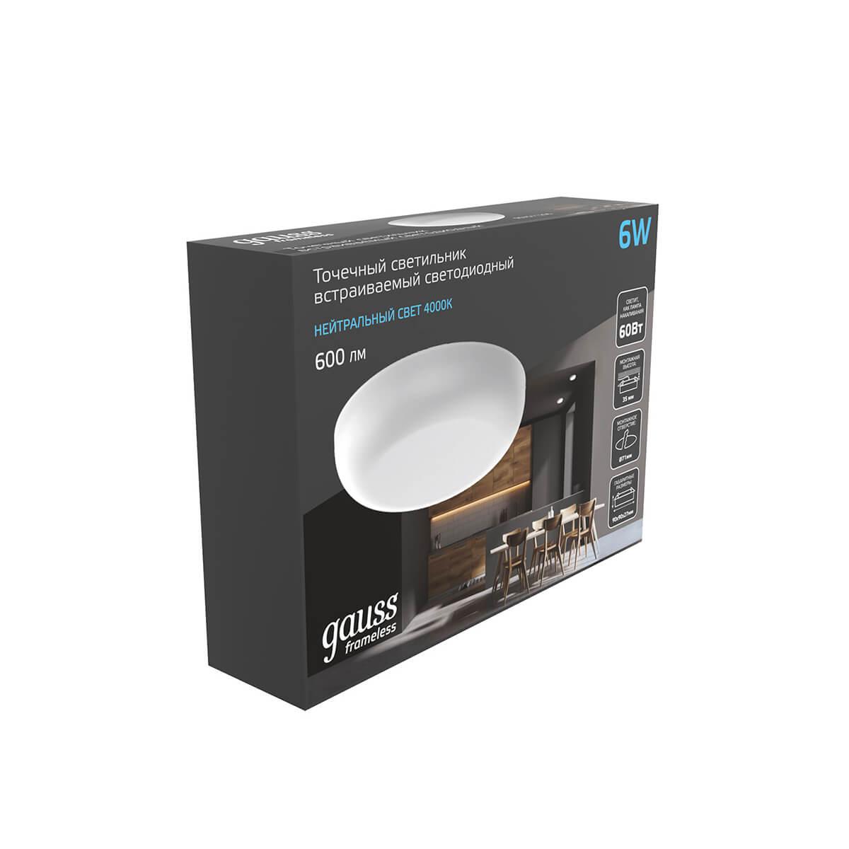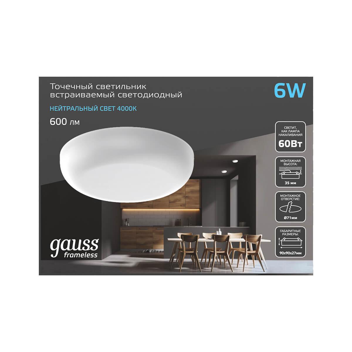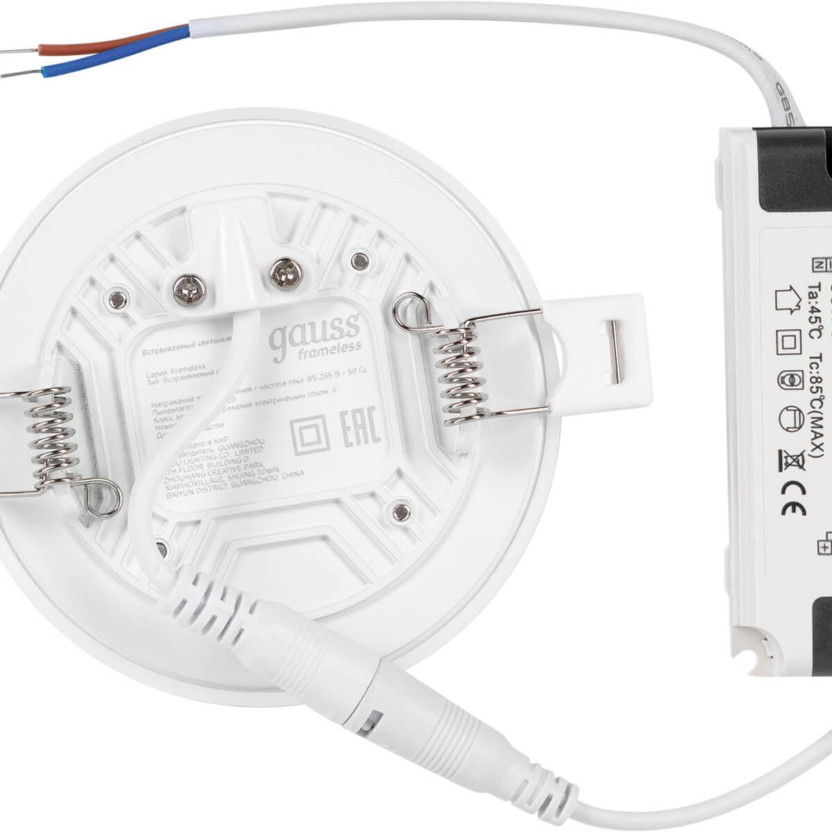 Встраиваемый светодиодный светильник Gauss Frameless круг 967511206
