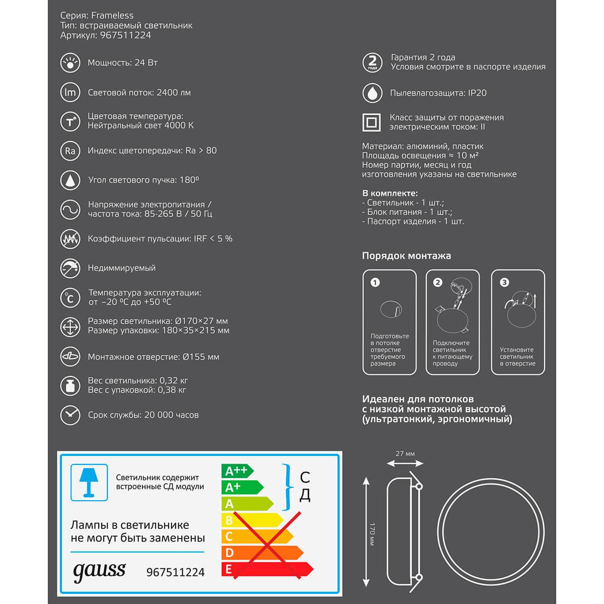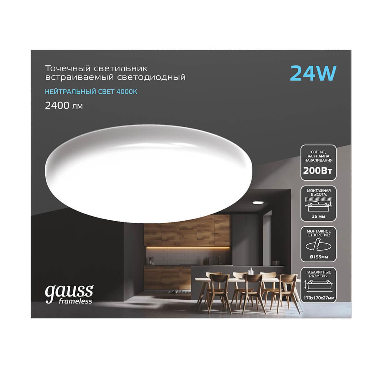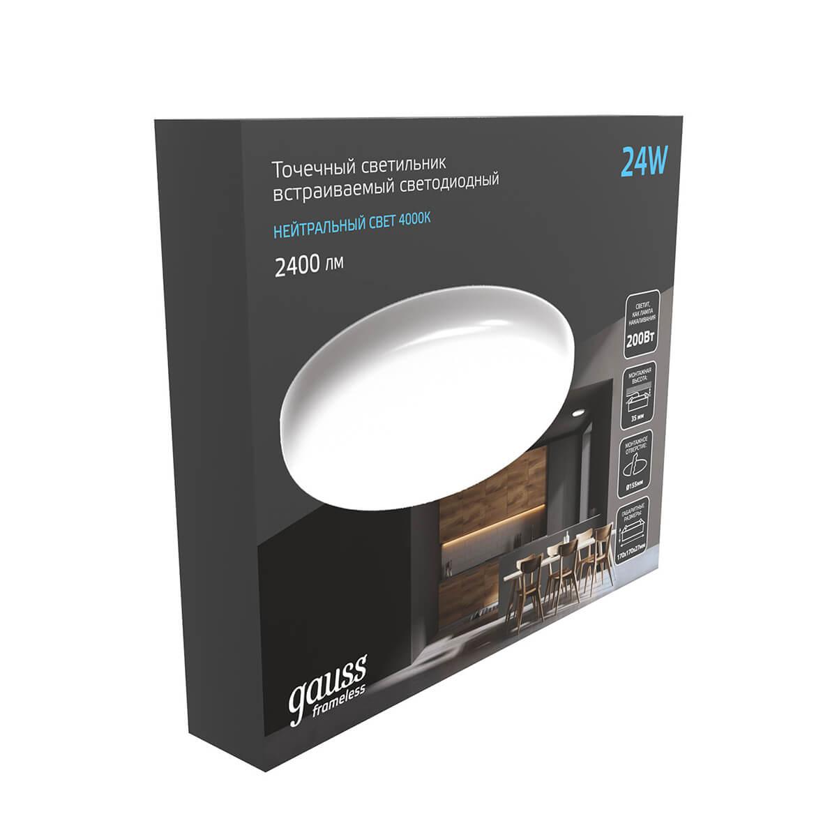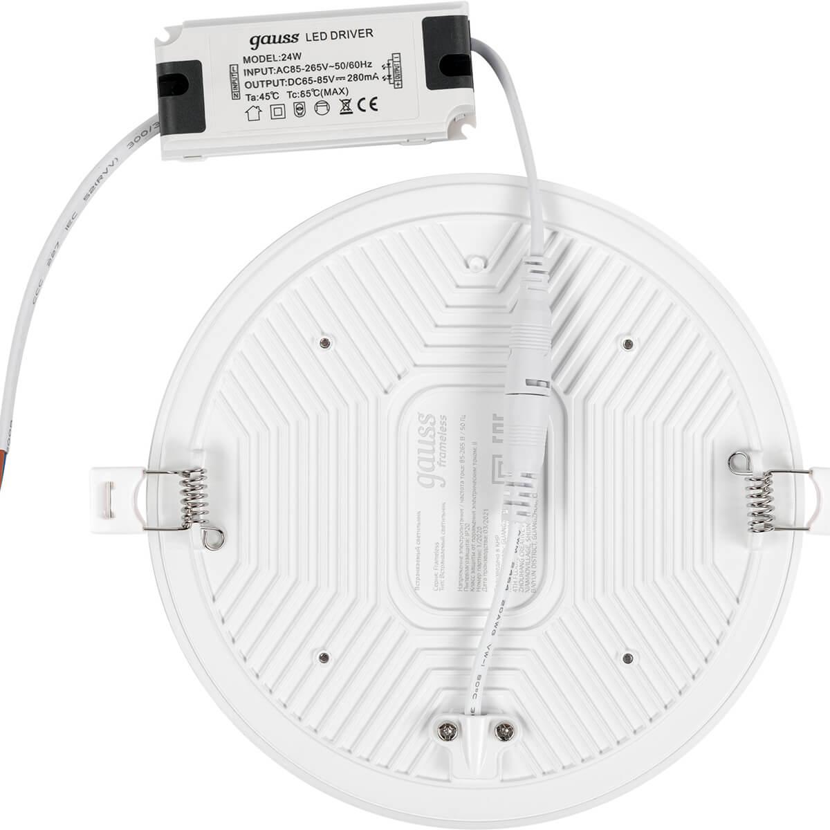 Встраиваемый светодиодный светильник Gauss Frameless круг 967511224