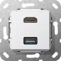 Розетка двойная HDMI-USB 3.0 A Gira System 55 чисто-белый глянцевый 567803