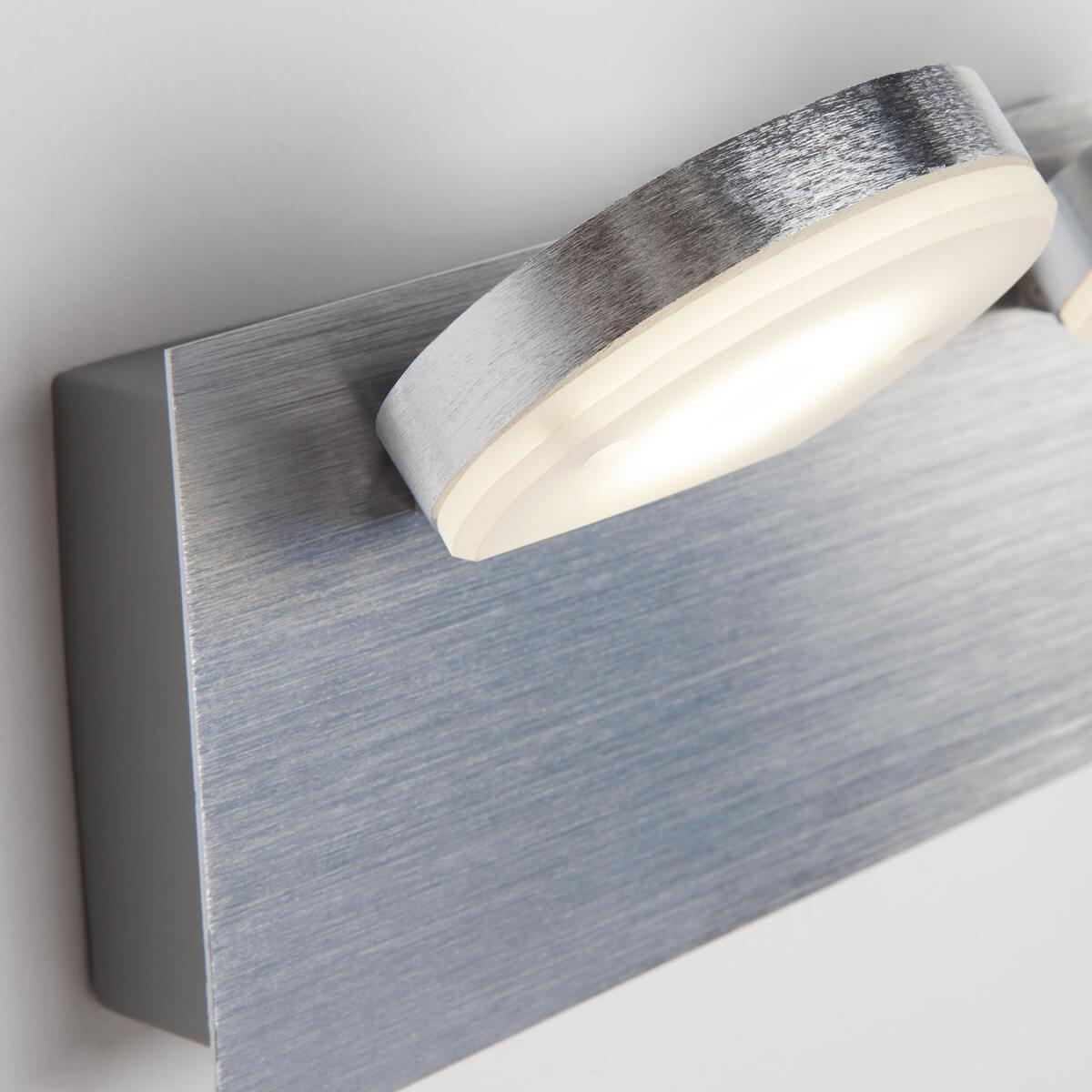 Настенный светильник Eurosvet 20004/2 алюминий от Российского бренда Eurosvet из коллекции Cover предназначен для установки в кафе и ресторанах на стену в хай-тек стиле. Спот с металлической арматурой серебрянного цвета и серебрянного цвета плафонами из металла, формы круга предназначен для освещения 3 м2.