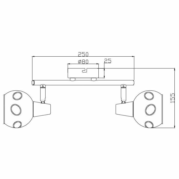 Для спота необходима 2 светодиодные лампы 40 W и цоколем E14. Габариты изделия: высота – 155 мм, диаметр – мм.