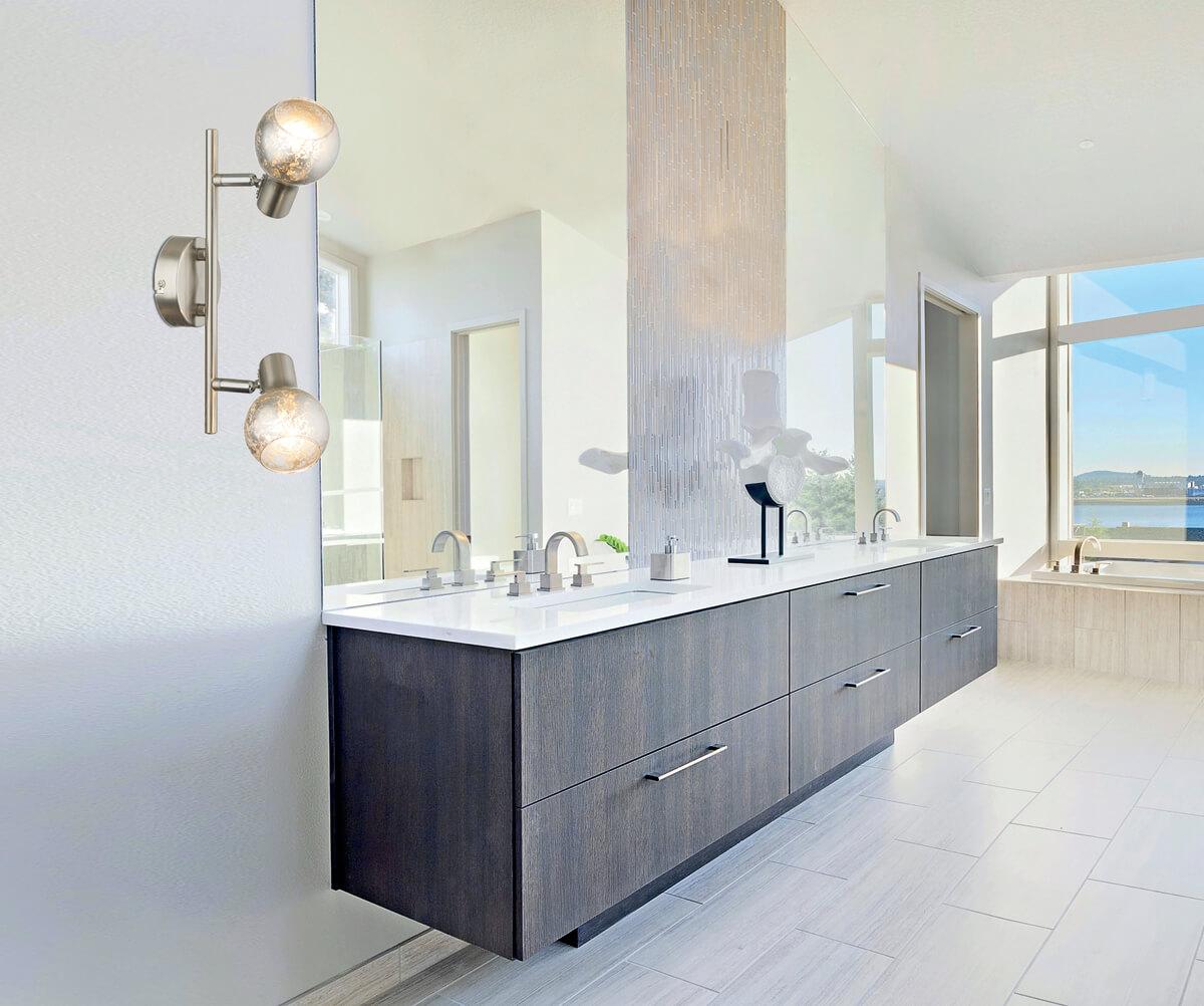 Для спота необходима 2 энергосберегающие лампы 25 W и цоколем E14. Габариты изделия: высота – 155 мм, диаметр – мм.