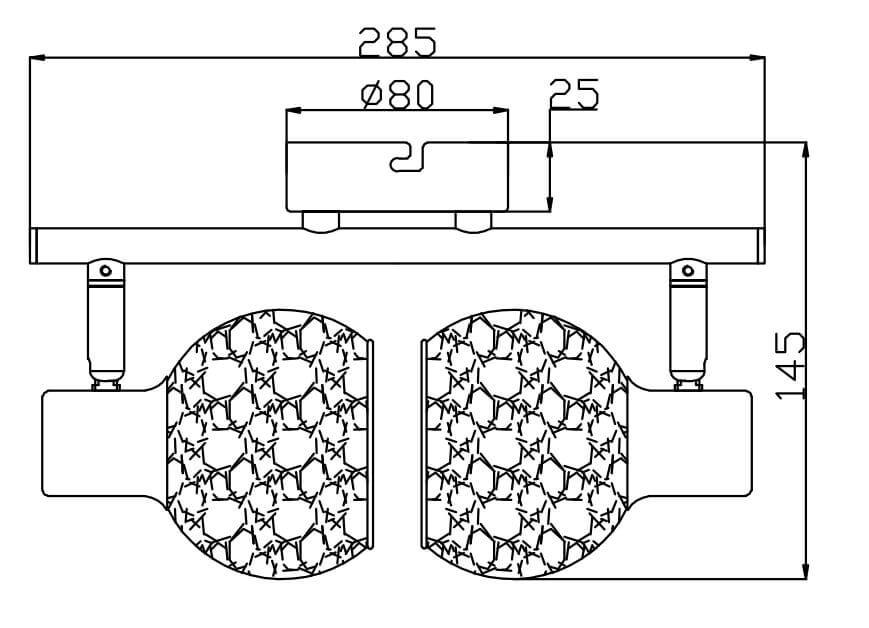 Для спота необходима 2 лампы накаливания 40 W и цоколем E14. Габариты изделия: высота – 100 мм, диаметр – мм.