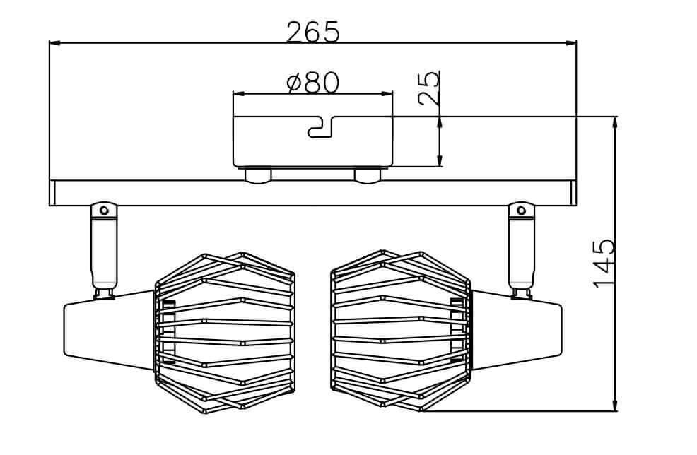 Для спота необходима 2 лампы накаливания 40 W и цоколем E14. Габариты изделия: высота – 100 мм, диаметр – мм.