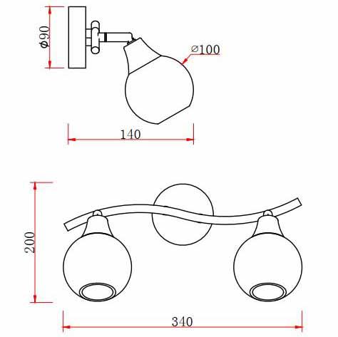 Для спота необходима 2 лампы накаливания 40 W и цоколем E14. Габариты изделия: высота – 200 мм, диаметр – мм.