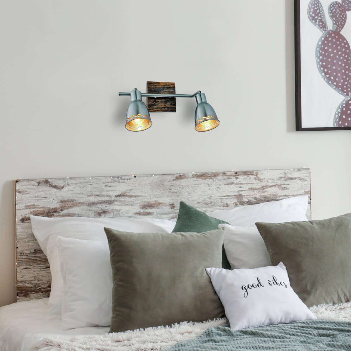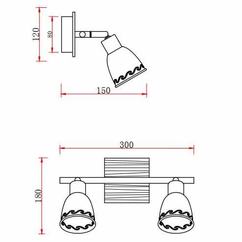 Для спота необходима 2 лампы накаливания 40 W и цоколем E14. Габариты изделия: высота – 180 мм, диаметр – мм.