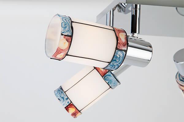 Потолочный светильник Eurosvet 20054/4 хром от Китайского бренда из коллекции Тиффани предназначен для установки в спальни на потолок в стиле модерн. Спот с металлической арматурой цвет хрома и разноцветного цвета плафонами из стекла, формы предназначен для освещения м2.