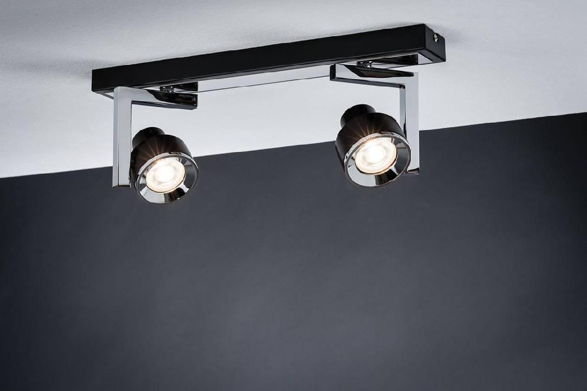 Спот Paulmann Turn 66671 от Немецкого бренда из коллекции Turn предназначен для установки в кафе и ресторанах на потолок в хай-тек стиле. Спот с металлической арматурой цвет хрома и черного цвета плафонами из пластика, формы предназначен для освещения м2.