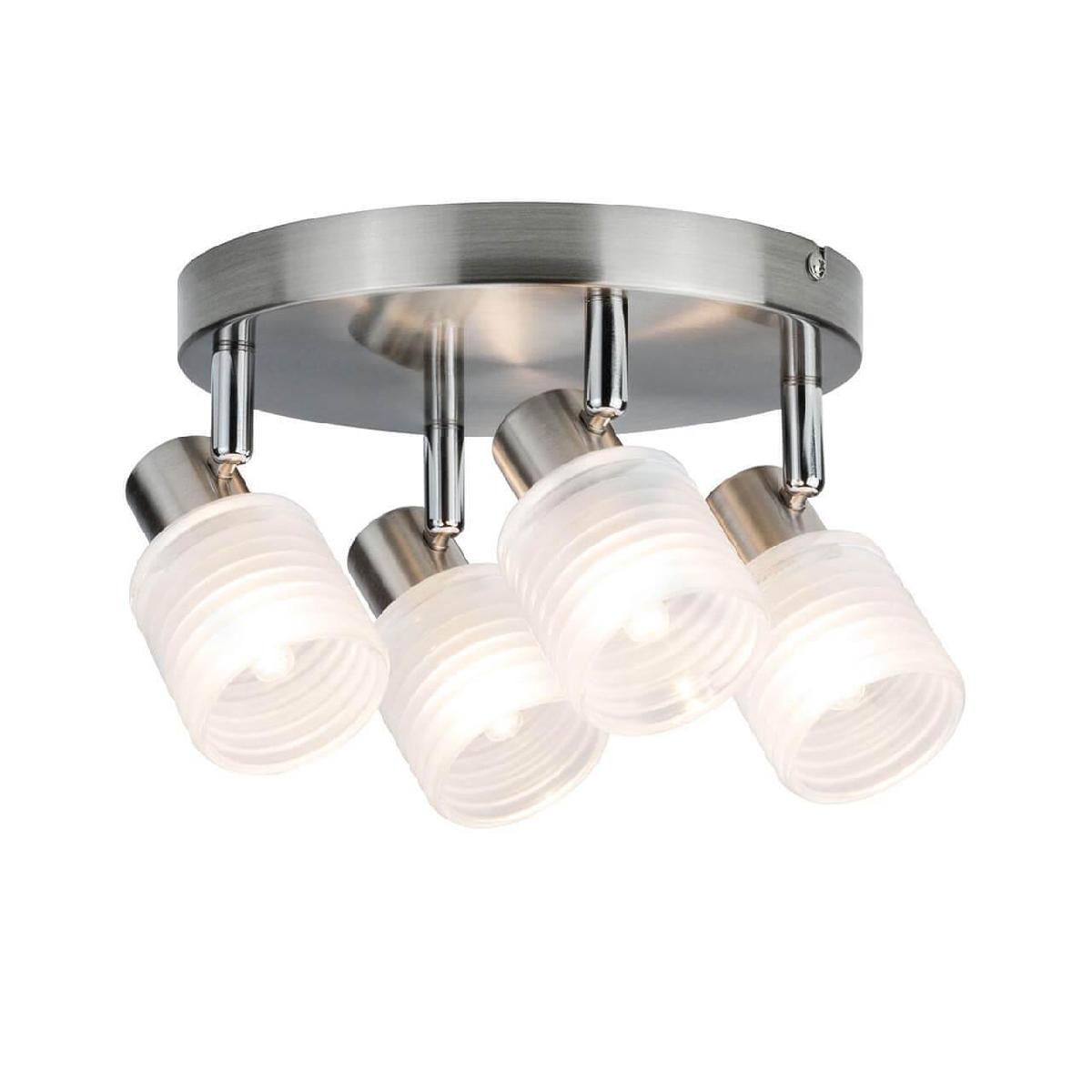Для спота необходима 4 светодиодные лампы 2,2 W и цоколем G9. Габариты изделия: высота – 120 мм, диаметр – 220 мм.