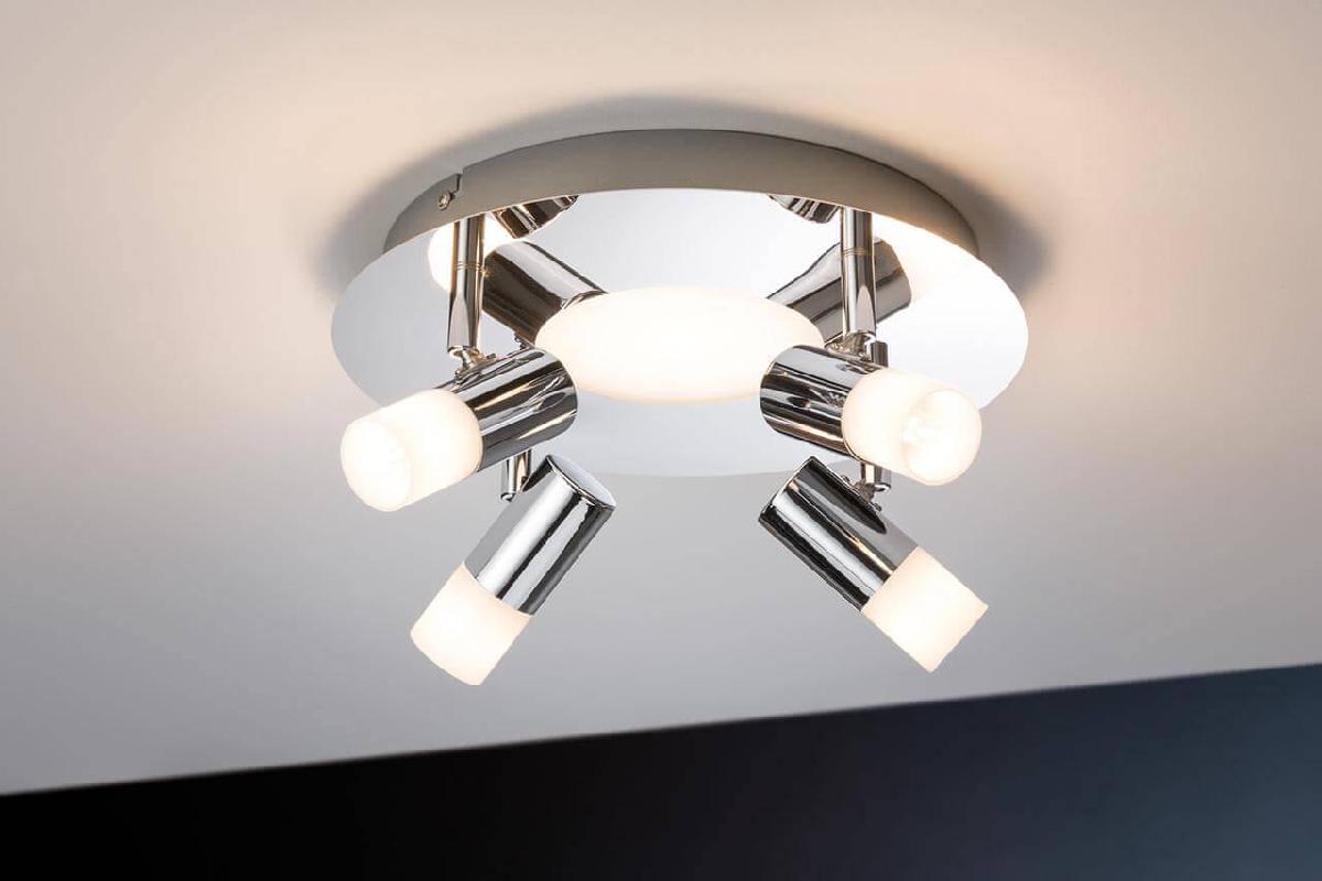 Для спота необходима 4 светодиодные лампы 10 W и цоколем G9. Габариты изделия: высота – 115 мм, диаметр – 290 мм.