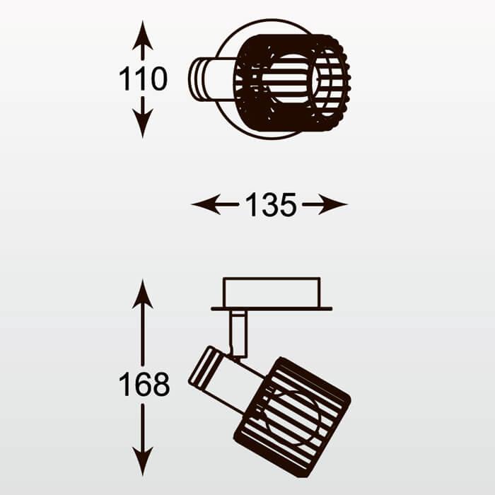 Для спота необходима 1 лампа накаливания 40 W и цоколем E14. Габариты изделия: высота – 168 мм, диаметр – мм.