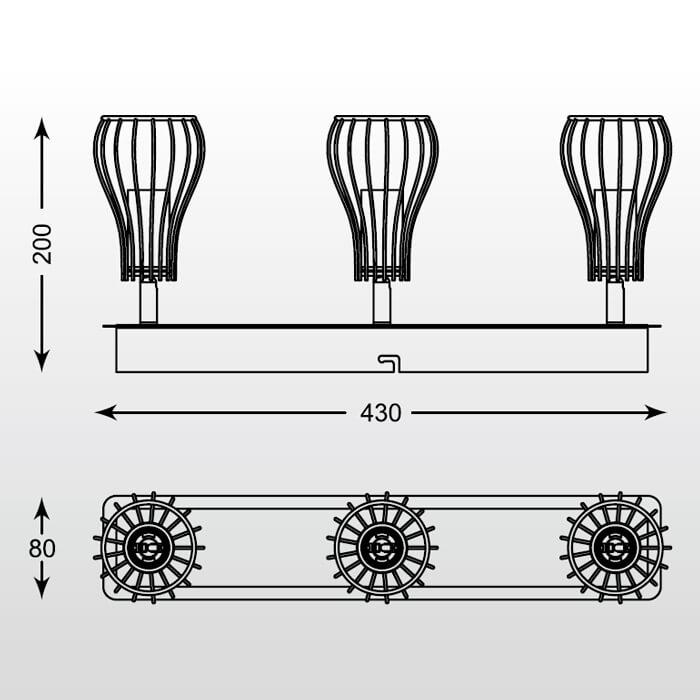 Для спота необходима 3 лампы накаливания 40 W и цоколем E14. Габариты изделия: высота – 200 мм, диаметр – мм.