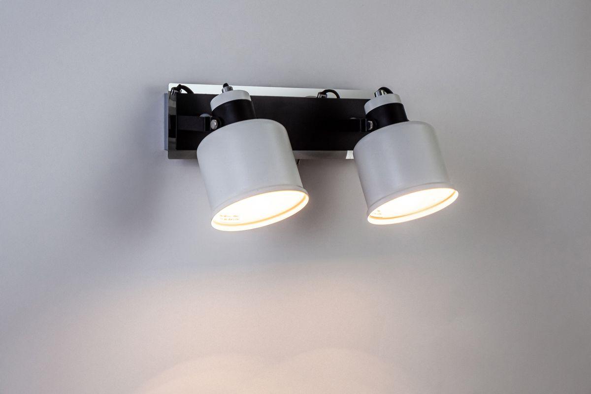 Для спота необходима 2 лампы накаливания 40 W и цоколем E14. Габариты изделия: высота – 144 мм, диаметр – мм.