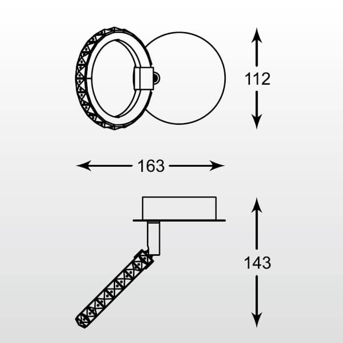Для спота необходима светодиодных ламп 5 W и цоколем LED. Габариты изделия: высота – 143 мм, диаметр – мм.