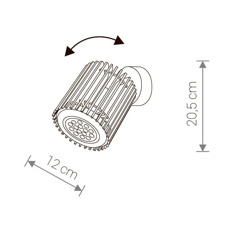 Для спота необходима 1 галогеновая лампа 35 W и цоколем GU10. Габариты изделия: высота – 205 мм, диаметр – 120 мм.