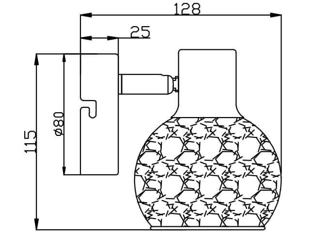Для спота необходима 1 лампа накаливания 40 W и цоколем E14. Габариты изделия: высота – 100 мм, диаметр – мм.