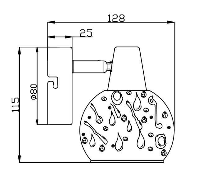Для спота необходима 1 лампа накаливания 40 W и цоколем E14. Габариты изделия: высота – 100 мм, диаметр – мм.