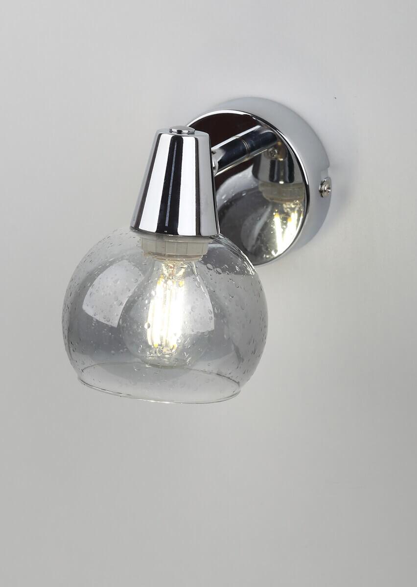 Спот Rivoli Gocce 7007-701 от Итальянского бренда Rivoli из коллекции Gocce предназначен для установки в спальни на стену в стиле модерн. Спот с металлической арматурой цвет хрома и дымчатого цвета плафонами из стекла, формы круга предназначен для освещения 4 м2.