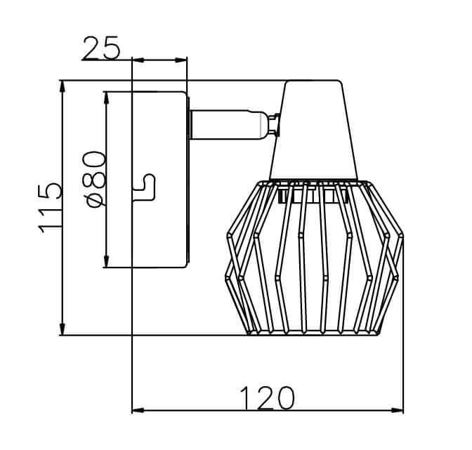 Для спота необходима 1 лампа накаливания 40 W и цоколем E14. Габариты изделия: высота – 100 мм, диаметр – мм.