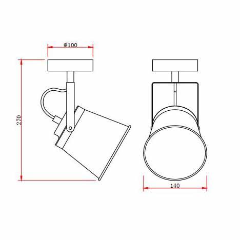 Для спота необходима 1 лампа накаливания 40 W и цоколем E27. Габариты изделия: высота – 270 мм, диаметр – мм.