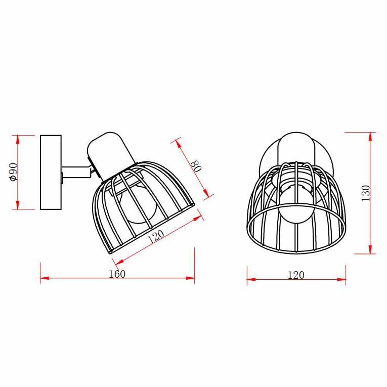 Для спота необходима 1 лампа накаливания 40 W и цоколем E27. Габариты изделия: высота – 130 мм, диаметр – мм.