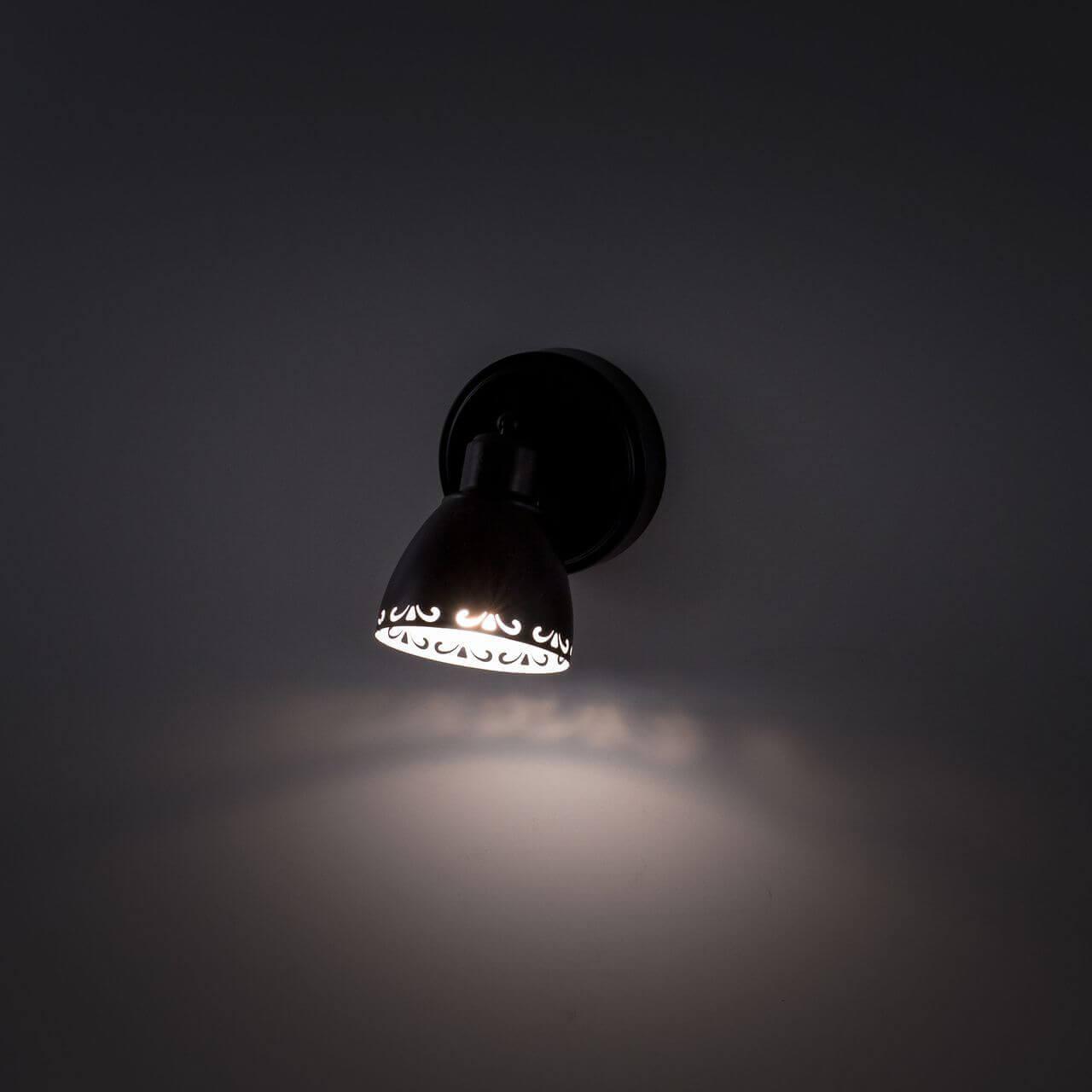 Для спота необходима 1 лампа накаливания 60 W и цоколем E14. Габариты изделия: высота – 200 мм, диаметр – мм.